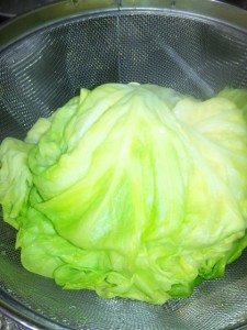 一枚一枚やさしくはがした葉は、軽く茹でるか蒸して柔らかくします。
