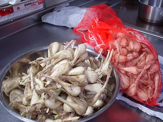 泥を落して薄皮を取るために水にしばらく漬けます。